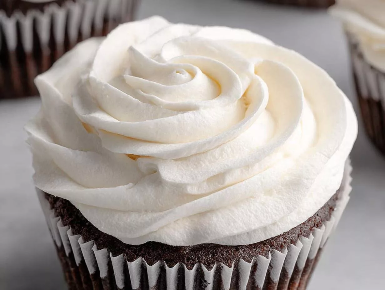 A simple and fluffy marshmallow frosting made with just four ingredients, perfect for decorating cupcakes.