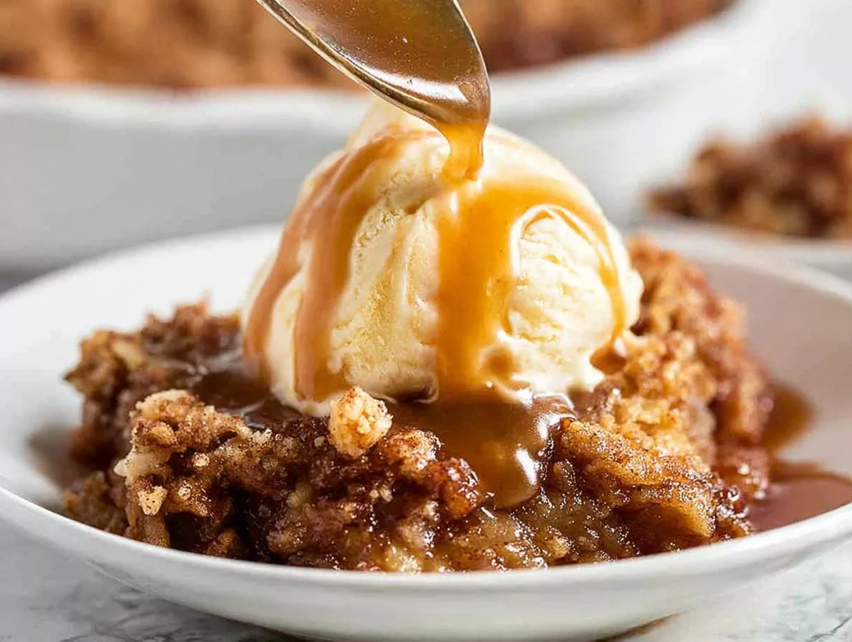 Oh, let me tell you how we love to serve this warm, bubbly beauty! A big scoop of vanilla ice cream melting over the top is non-negotiable in my house – that hot-cold contrast is everything. For extra indulgence, I’ll drizzle caramel sauce and maybe a dollop of fresh whipped cream. But honestly? It’s heavenly all by itself too, especially with that crispy topping still warm from the oven!