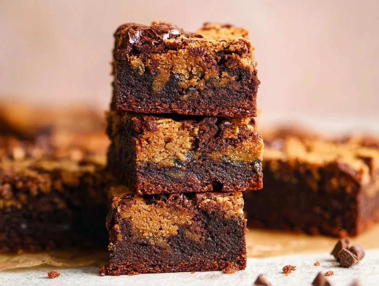 A delicious hybrid dessert combining the best of brownies and cookies, featuring layers of rich brownie batter and chewy cookie dough.