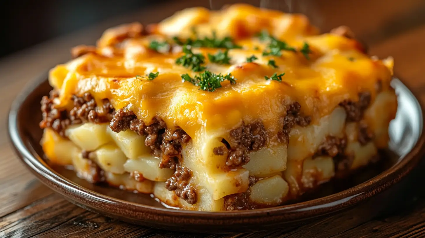 This easy-to-follow recipe is perfect for busy weeknights or cozy family dinners. Imagine thinly sliced potatoes, seasoned ground beef, and a golden layer of melted cheese coming together in one dish. It’s a casserole that’s as satisfying to make as it is to eat.