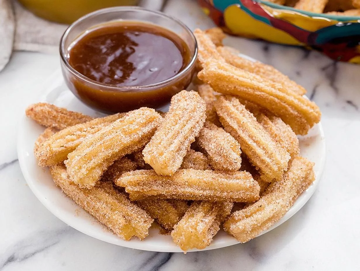 Crispy, golden churro bites coated in cinnamon sugar, perfect for a sweet snack or dessert.