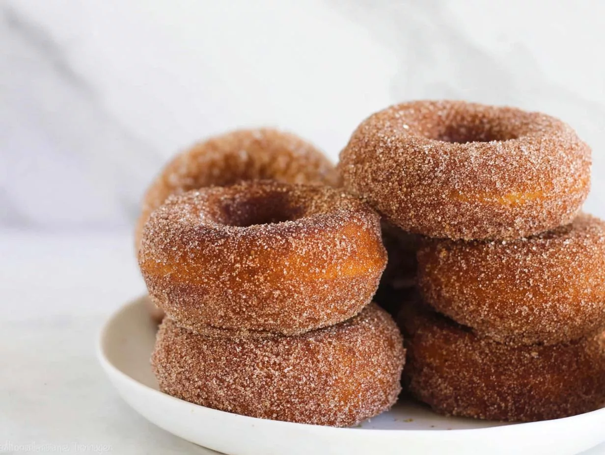 Delicious pumpkin donuts with a cinnamon sugar coating, perfect for fall or any time of the year.