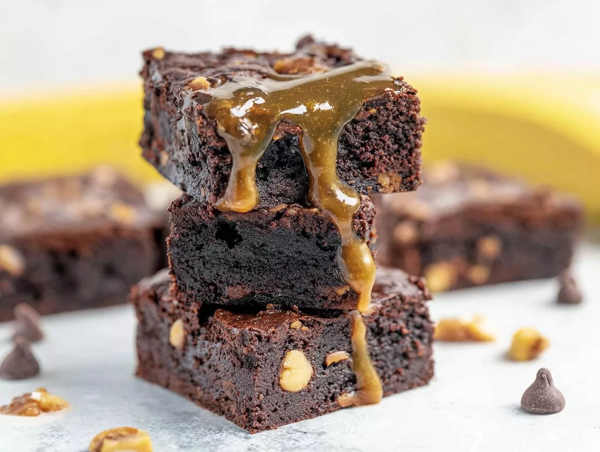 Rich and fudgy banana brownies with chocolate chips and walnuts, perfect for a sweet treat.