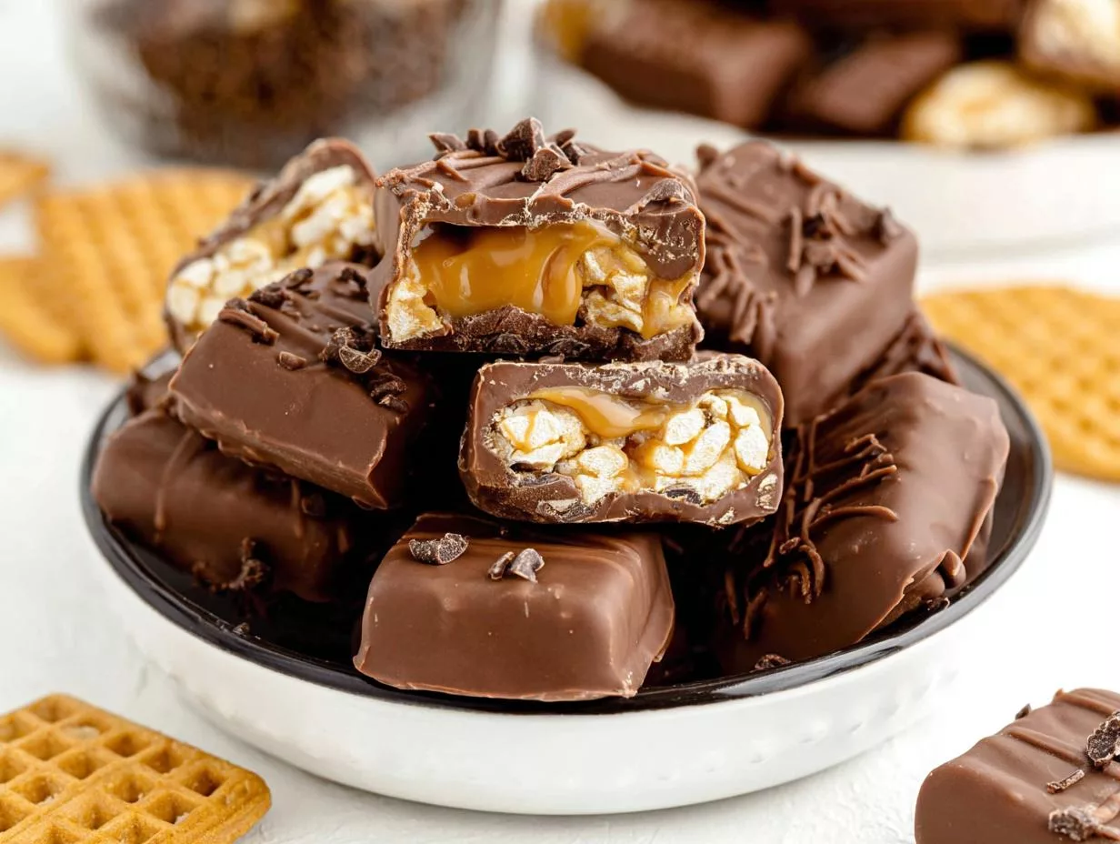 - Work in small batches – assemble 10-15 bars at a time so caramel doesn’t harden before stacking