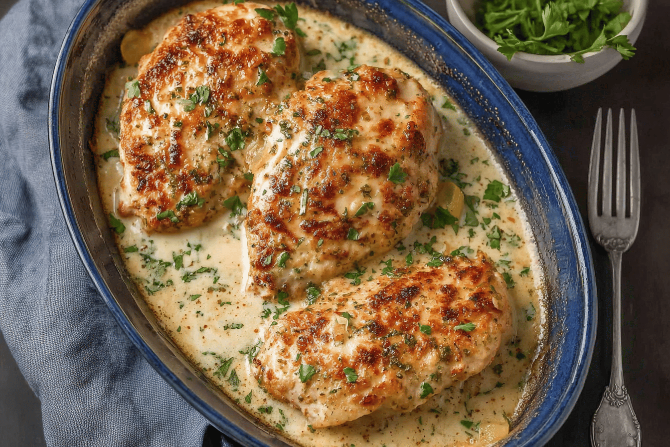 Slide your dish into the preheated oven and bake for about 30 minutes. Now, pop a meat thermometer in the thickest part just to be safe it should read around 150°F here, because we’re not done yet. After that, switch your oven to broil. Keep a VERY close eye on it now because these last few minutes are a bit of a tightrope walk about 2 to 4 minutes under the broiler until the top turns a gorgeous golden brown, and the internal temperature hits 165°F. This step is what turns the whole dish from meh to “oh wow, yes please.”