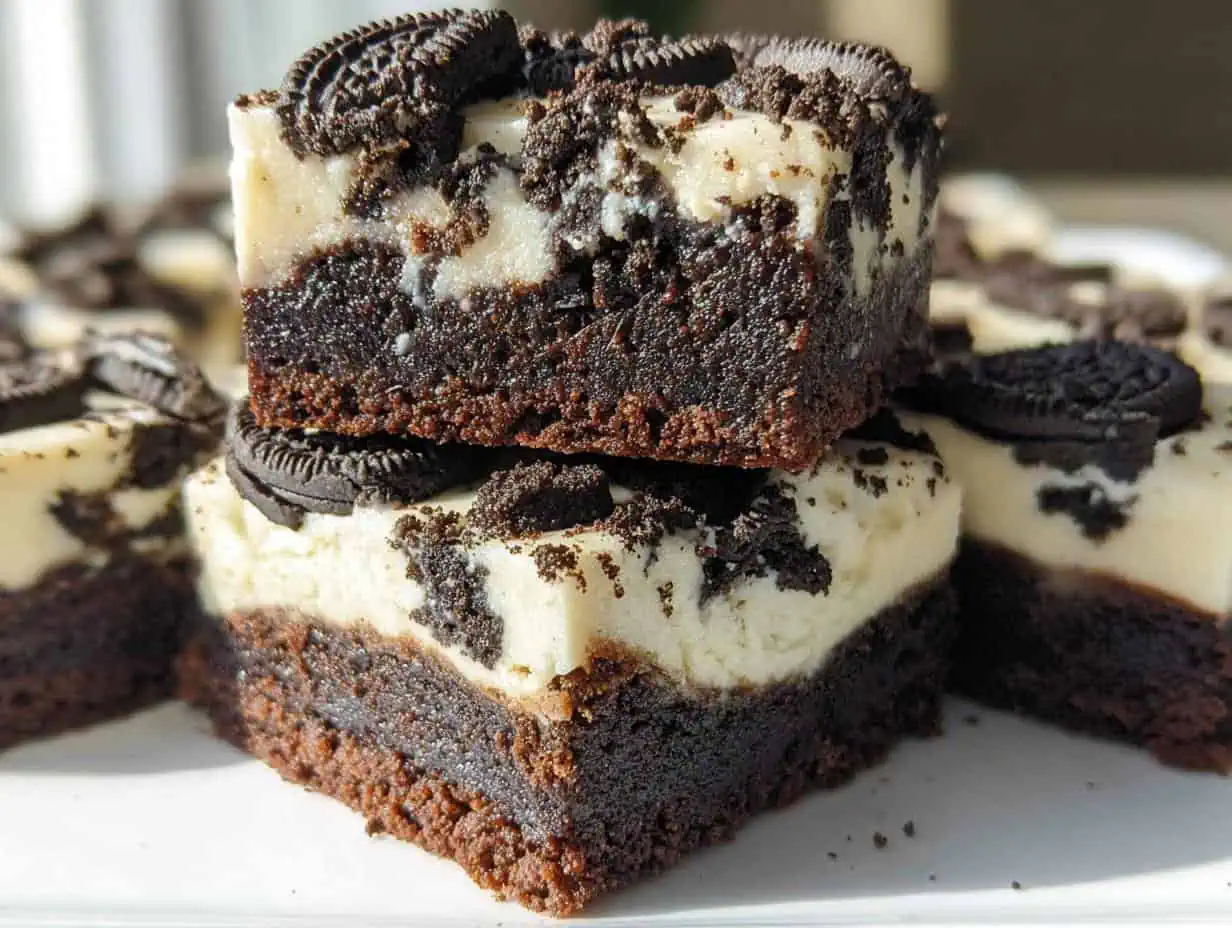 Oreo Cheesecake Brownies combine rich brownie layers with creamy cheesecake and Oreo cookies.