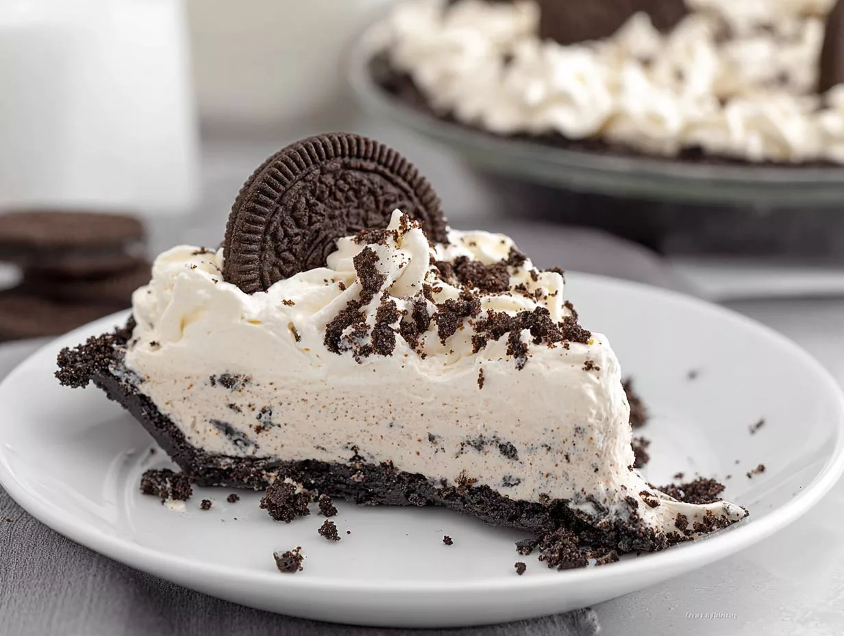 A delicious Oreo Cream Pie with a cookie crust and creamy filling.