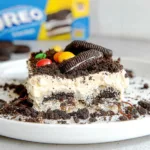 - Layer: Press half of the crushed Oreos into the bottom of a 9×13-inch pan, creating an even layer. Carefully pour the pudding mixture on top and spread evenly. Top with the remaining crushed Oreos.