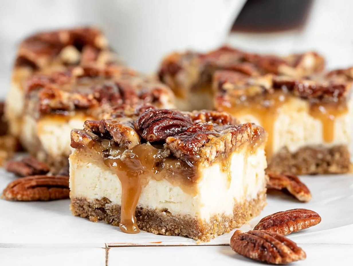 Pecan Pie Cheesecake Bars combine the rich flavors of pecan pie with creamy cheesecake in a convenient bar form. Perfect for gatherings or dessert lovers.