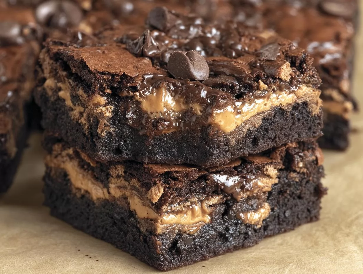 Delicious Reese’s Brownies combining rich chocolate and creamy peanut butter for a decadent treat.