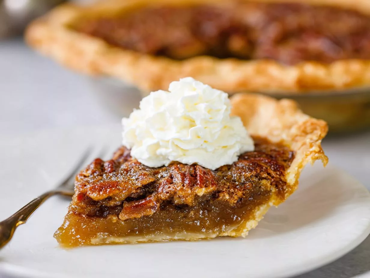 A classic Southern pecan pie with a rich, sweet filling and crunchy pecans.