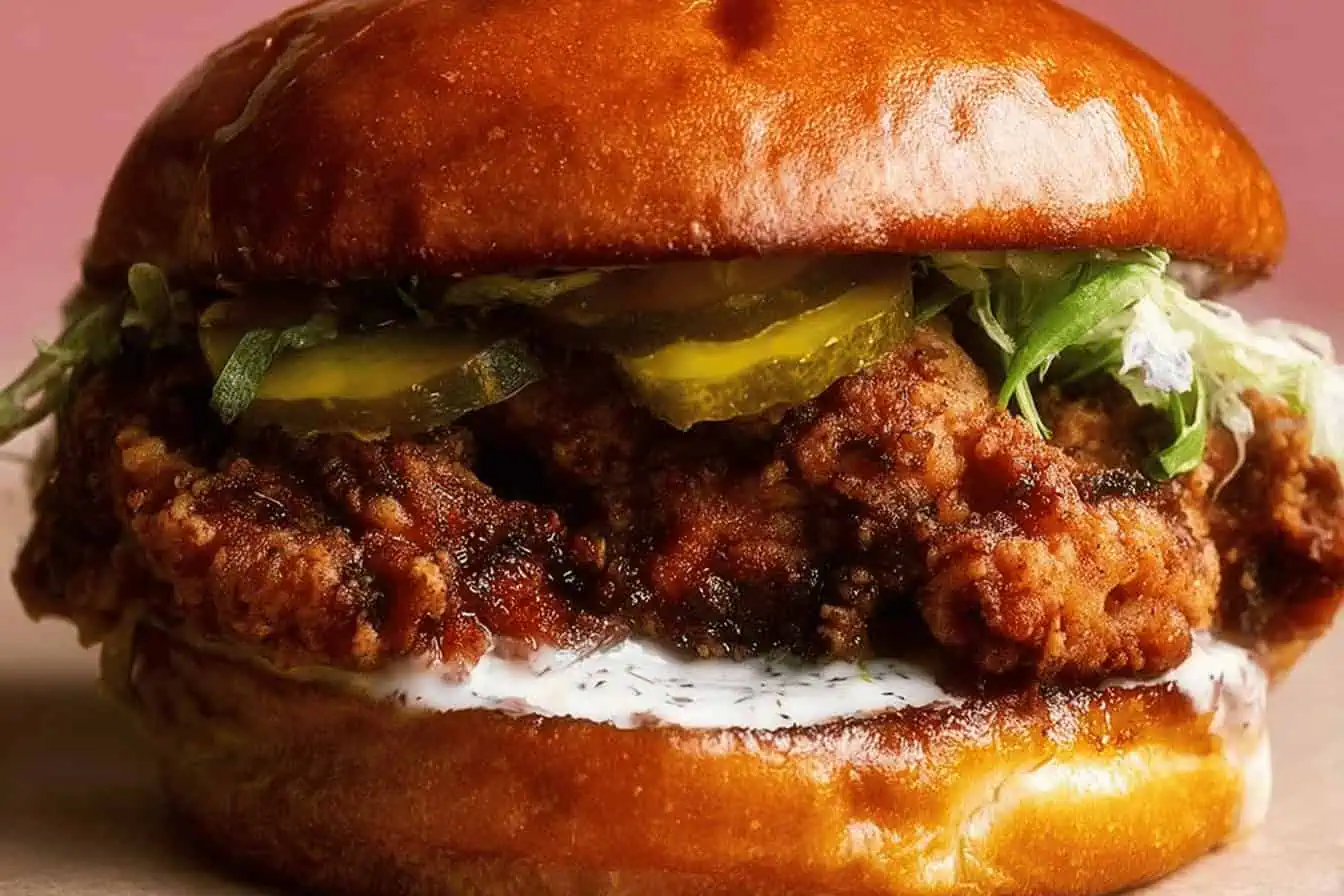 Brioche buns are perfect because their slight sweetness balances the spicy, tangy, crunchy combo inside. If you’re out, any soft, slightly sweet bun works fine.