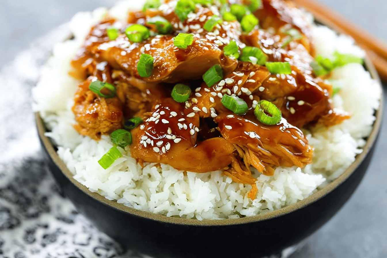 Cook Time: 3 hours on HIGH or 5 to 6 hours on LOW Total Time: 3 hours 10 minutes to 6 hours 10 minutes Servings: 4-6 servings There’s something so satisfying about slow cooker meals, especially this teriyaki chicken. You just toss the chicken in the slow cooker, whisk up a sauce with garlic, ginger, honey, brown sugar, soy sauce, sesame oil, and rice vinegar (the combo of ginger and garlic always makes my kitchen smell insanely good — although sometimes I accidentally chop too much garlic and end up with “garlic breath” for days). Pour that sweet-savory sauce over your chicken and let the slow cooker do its magic. When it’s all cooked and the chicken is falling apart from just a nudge of your forks, you take it out and shred it — this is where I usually end up with tiny bits everywhere, and my counter looks like a chicken confetti party. Then I strain the sauce and thicken it with a little cornstarch slurry. If you skip the thickening step… well, the sauce ends up more like a glaze or dipping sauce. Not terrible, but hey, thick is better in this case. Pour that luscious, thickened sauce back over the shredded chicken, sprinkle with sesame seeds and green onions, and you’re set. Serve it with steamed rice or just dive straight in—no judgment here. It’s pretty much comfort food that feels fancy but saves you from a million pots and dirty dishes. Perfect for those nights you want a home-cooked meal but also want to binge-watch your favorite show with zero kitchen stress.