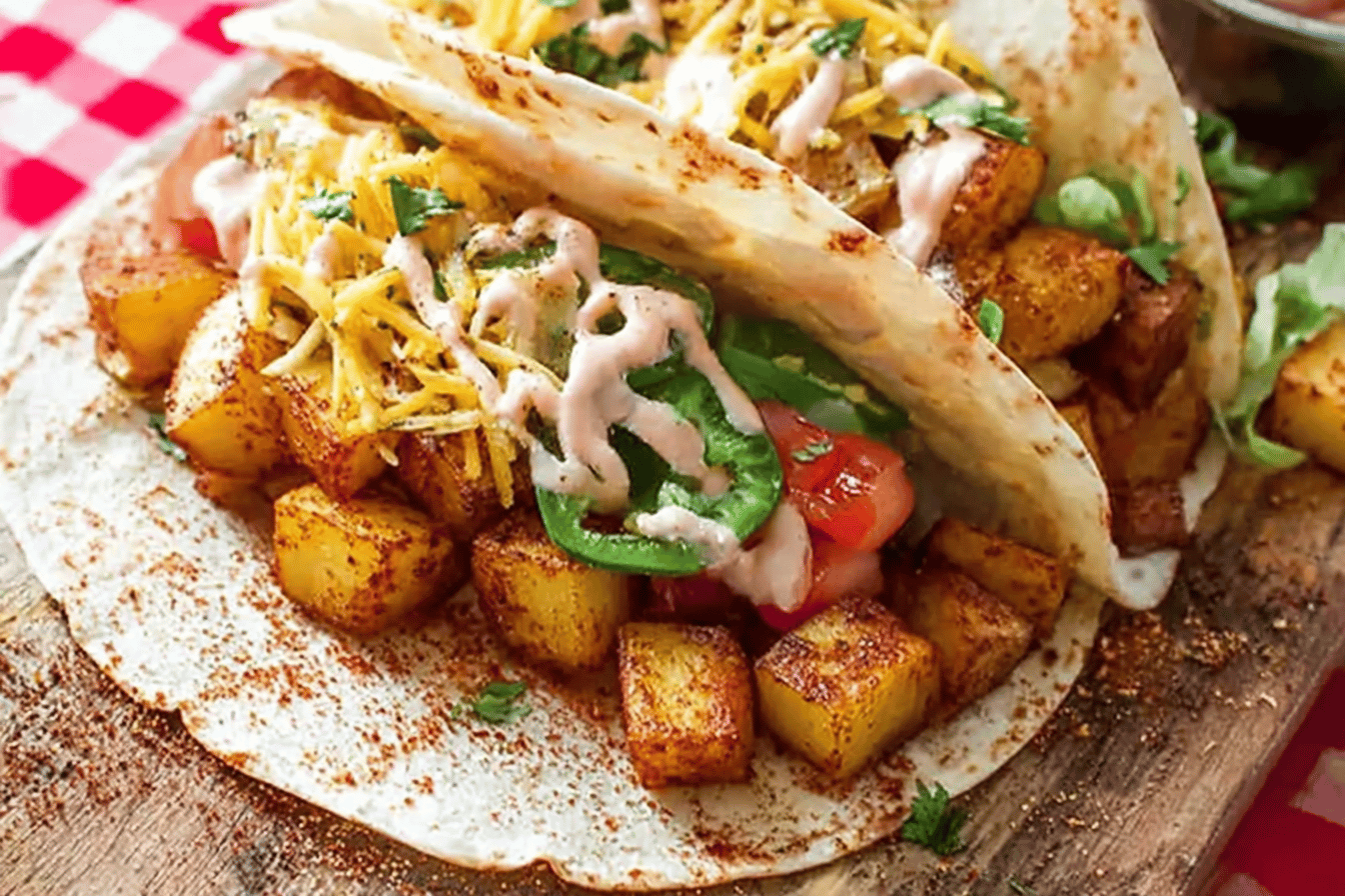 Warm, flexible tortillas make a huge difference. Layer the potatoes first so the heat warms the toppings gently. Don’t overload with veggies at first—start simple and add more if you want! Salsa or a creamy vegan sauce on top seals the deal every time.