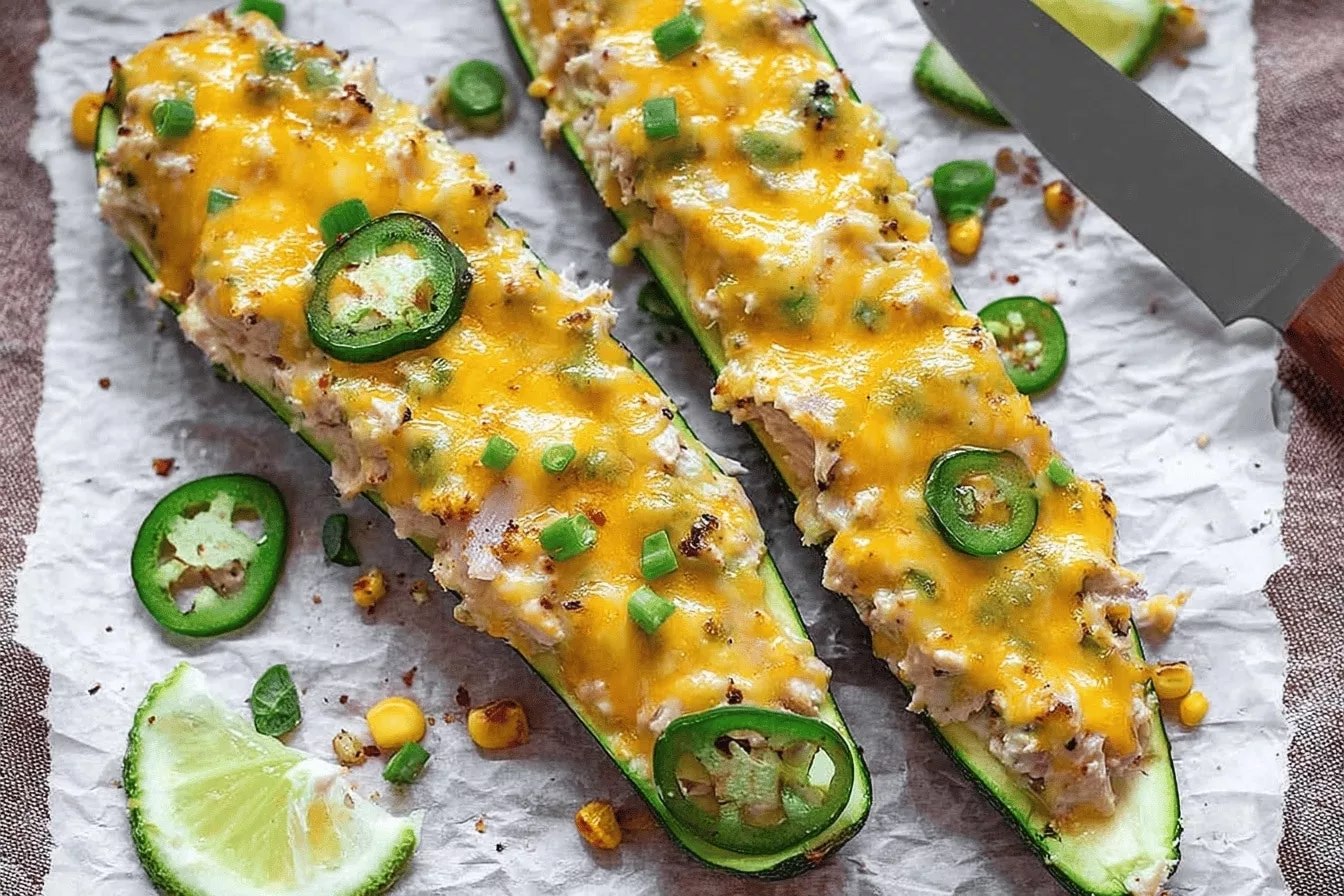 Well, if you’ve ever found yourself staring blankly into the fridge wondering what on earth to whip up that’s light, tasty, and won’t leave you feeling like you just ate a brick, these Tuna-Stuffed Zucchini boats have got your back. Honestly, this recipe is one of those sneaky little gems that feels fancy but is ridiculously easy to put together — and cleanup is a breeze too. I’ll admit, the first time I tried this, I kinda overstuffed the zucchini like a sandwich hoarder, and the cheese bubbled over in a glorious, slightly messy way. No regrets though, because it only added to the cozy, “just made this fresh” vibe. The combo of tender zucchini, the zingy tuna salad with a pop of jalapeno heat, and that melty cheddar? Comfort food at its best without weighing you down.