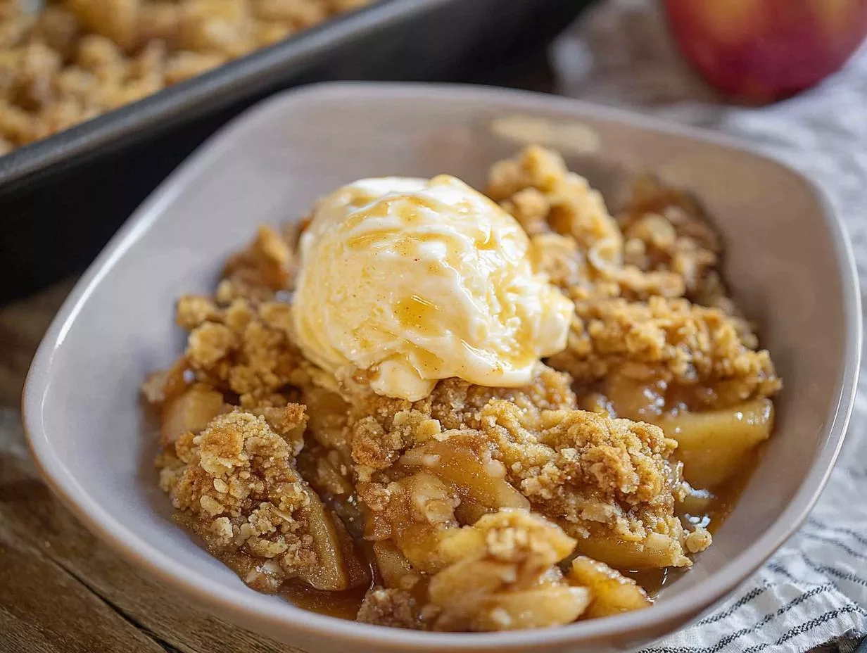 A classic apple crisp with a sweet, crunchy topping and tender spiced apples. Perfect for dessert or a cozy treat.