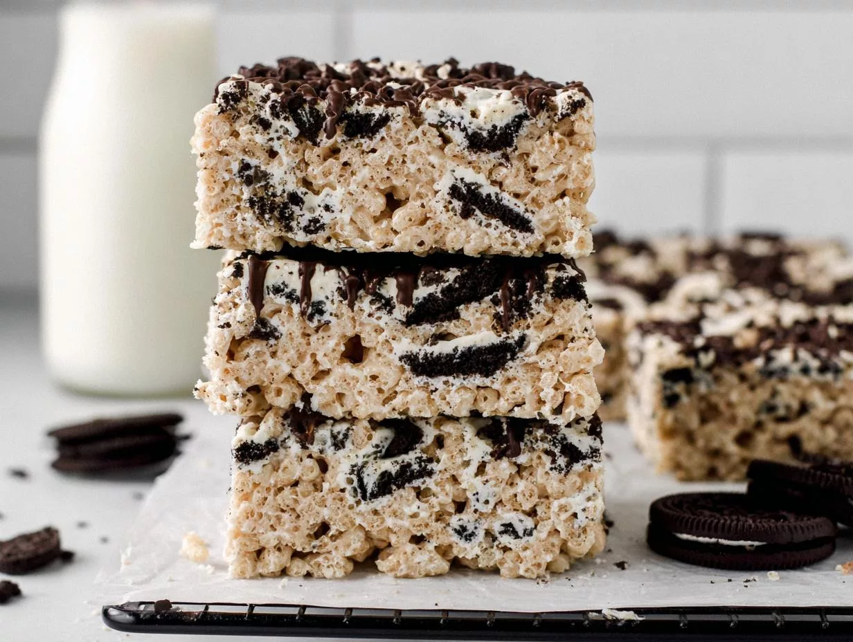 A delicious and easy-to-make treat combining Rice Krispies, Oreos, and white chocolate for a sweet and crunchy dessert.